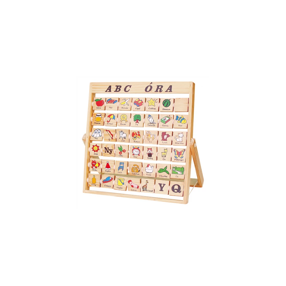 Az ABC tábla lehetőséget kínál az ábécé örömteli gyakorlására, tanulására, hiszen számos játékvariáció lehetséges, a táblácskák forgatásának lehetősége pedig ragyogó szórakozást biztosít.