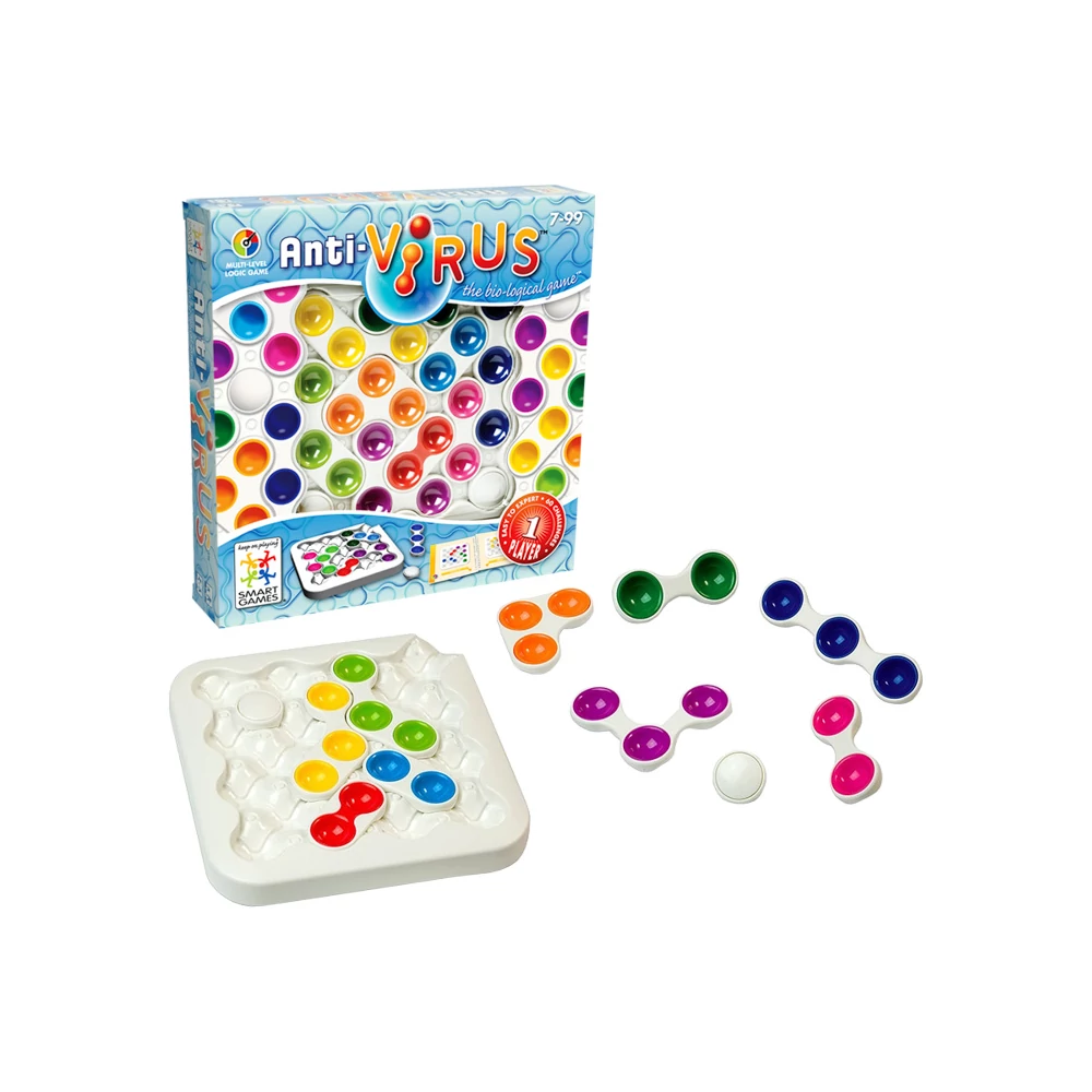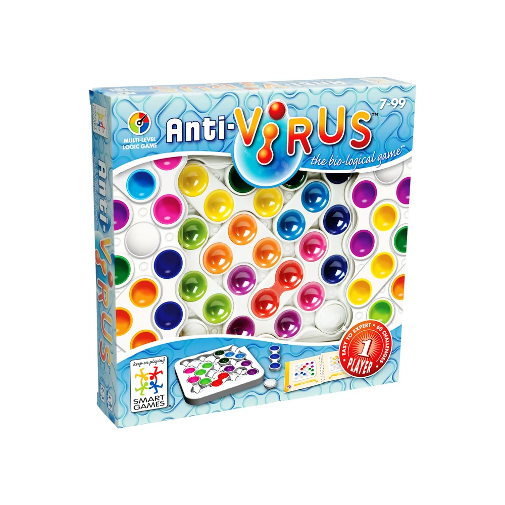 Anti Virus egyedül játszható logikai fejlesztő játék, mely kitűnő szórakozást nyújt 6 éves kortól, fejleszti a logikus gondolkodást, a stratégiai szemléletet és a térlátást.