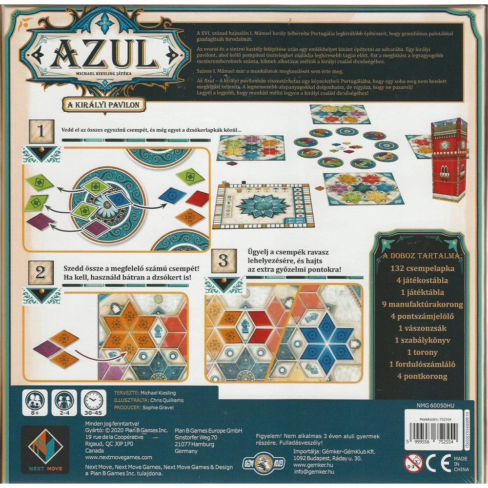 A XVI. század hajnalán I. Mánuel király felbérelte Portugália legkiválóbb építészeit, hogy grandiózus palotákkal gazdagítsák birodalmát. Az evorai és a sintrai kastély felépítése után egy emlékhelyet kívánt építtetni az udvarába. Egy királyi pavilont, ahol kellő pompával tiszteleghet családja leghíresebb tagjai előtt. Ezt a megbízást a legragyogóbb mesterembereknek szánta, kiknek alkotásai méltók a királyi család dicsőségéhez. Sajnos I. Mánuel már a munkálatok megkezdését sem érte meg. Az Azul: A királyi pavilonban visszatérhetsz egy képzeletbeli Portugáliába, hogy egy soha meg nem kezdett megbízást teljesíts. A legnemesebb alapanyagokkal dolgozhatsz, de vigyázz, hogy ne pazarolj! Legyél a legjobb, hogy munkád méltó legyen a királyi család dicsőségéhez!