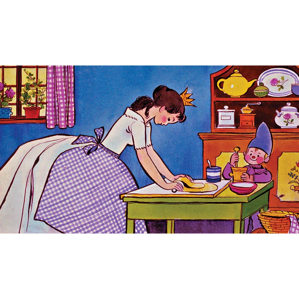 „Megvolt hát a hét országra szóló lakodalom. A szépséges Hófehérke a királyfi felesége lett. Sírva-ríva búcsúzkodtak a törpécskék. Hófehérke vigasztalgatta őket: — Ne sírjatok: törődőm veletek ezután is! — A palota kincses-ládájában megtalálta a gonosz mostoha varázstükrét, ha ebbe belenézett, máris látta, merre járnak, mit csinálnak kis barátai.”