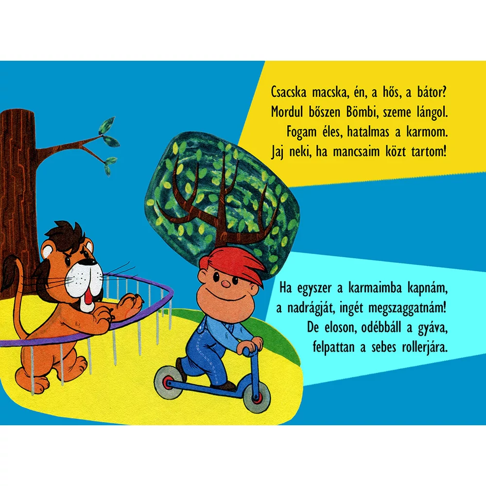 „Az állatkert rácsos kapujára kitették az esti táblát: ZÁRVA. A pereces utolsónak ment ki, nem maradt a ketrecek közt senki.” Vagy mégis? Romhányi József meséje – sokunk kedvence – az állatkert lakóiról, Bömbiről és barátairól szól, melyben kiderül, Bömbi nem csak bátor, de jószívű és igazságos. Tankó Béla rajzai teszik teljessé az élményt.