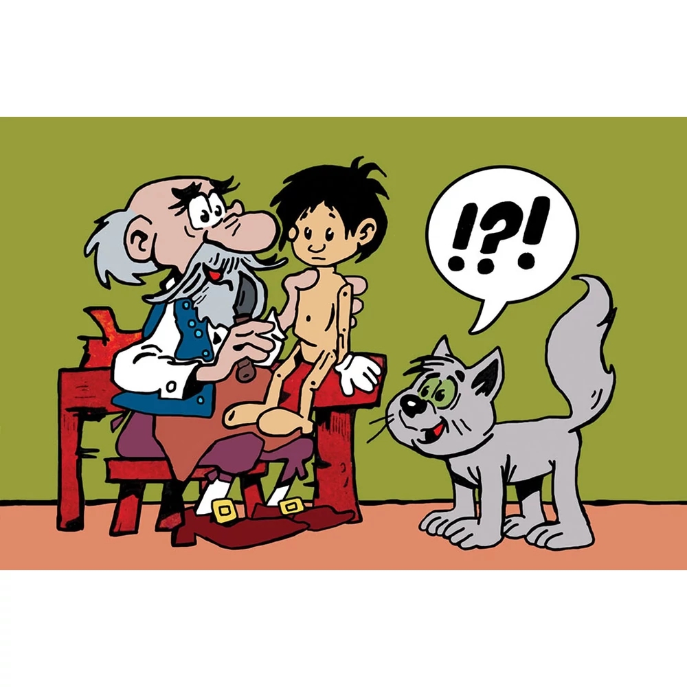 Élt egyszer réges régen egy öreg asztalos, akit Dzsepettónak hívtak. Jó ember volt, de magányos és szomorú, mert nem volt unokája. Egy napon támadt egy ötlete: farag egy bábut magának, ami olyan lesz, mint egy igazi kisfiú. Nevet is adott neki: Pinokkió.”