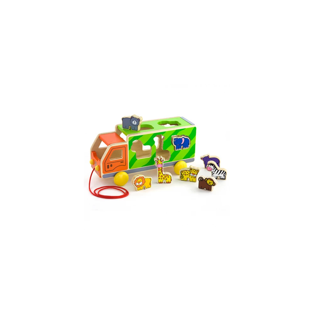 Vadállat szállító kamion a természet csodálatos színeivel. Ebben a kamionban minden állatnak megvan a helye, és ezt biztosítja a saját bejáratuk is: az állatok a formalyukon keresztül helyezhetőek el a raktérben. Ha a maci, zsiráf, oroszlán, tigris, majom, zebra és viziló a kamionban van, akkor indulhat a szállítmány. A kamion húzható kis járműként is szolgál. A végcélnál egyszerűen lenyílik a hátsó ajtó és az állatok könnyedén elhagyhatják a kamiont. Az impozáns játék kiválóan feljeleszti a motorikus készségeket.
