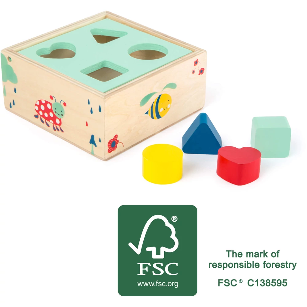 A formákat és színeket játékos módon tanulják meg ezzel a formabedobó kocka segítségével a legkisebbek. A natúr fa és pasztell színek használata közel hozza a természetet, ösztönösen fordul a gyermek az esztétikus eszközök felé. A játék tartós, és ami lényeges, hogy a fa játékok bizonyos keretek között javíthatóak, ez jelentősen megnöveli a játék időtartamát. A fedelet könnyű kinyitni és bezárni, billentéssel felhajtható. A doboz díszítése a réti állatokkal még kedvesebbé teszi a játékot.