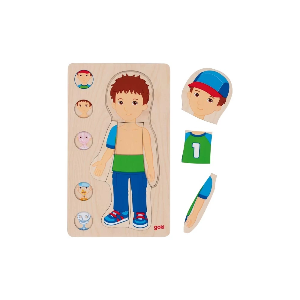 Hogyan néz ki testünk belülről? Ez az öt rétegből álló formakirakó bemutatja testünket, csontvázunkat, belső szerveinket, vérkeringésünket és izmainkat. Ne aggódj, mindezt szeretetteljes, kedves ábrákkal bemutatva teszi, a legvégén egy kedves, vidám fiú jön létre. A formába illesztés közben fejlődnek a vizuális készségek és motorikus képességek.