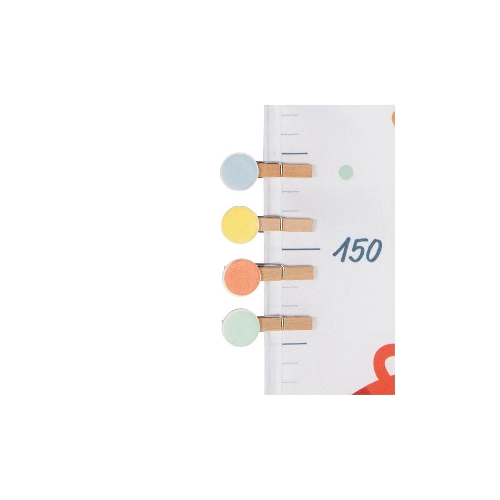 A kicsik olyan gyorsan felnőnek – minden centimétert fel kell jegyezni. Ennél a magasságmérőné színes csipeszek és vicces állatbarátok segítenek. A fából és textilből készült mérőpálca klasszikus minden gyerekszobába.