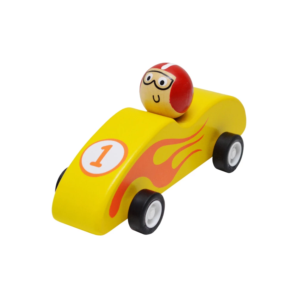 A kis citromsárga versenyautót kattanásig hátrahúzzuk a talajon, majd elengedve sebesen tovagurul.