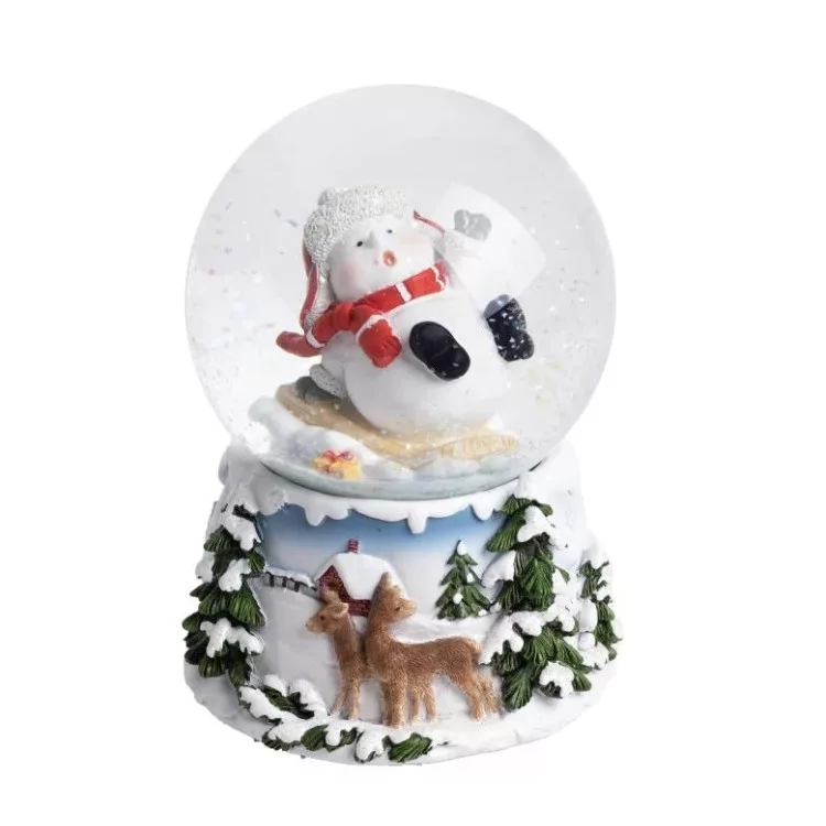 Zenélő hógömb piros sálas Hóemberrel, adventi időszakra dekoráció.