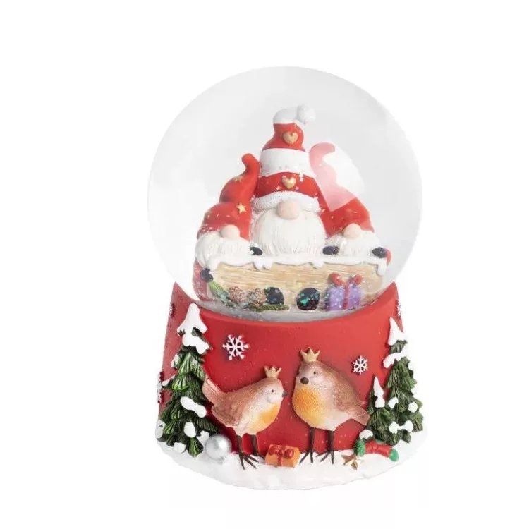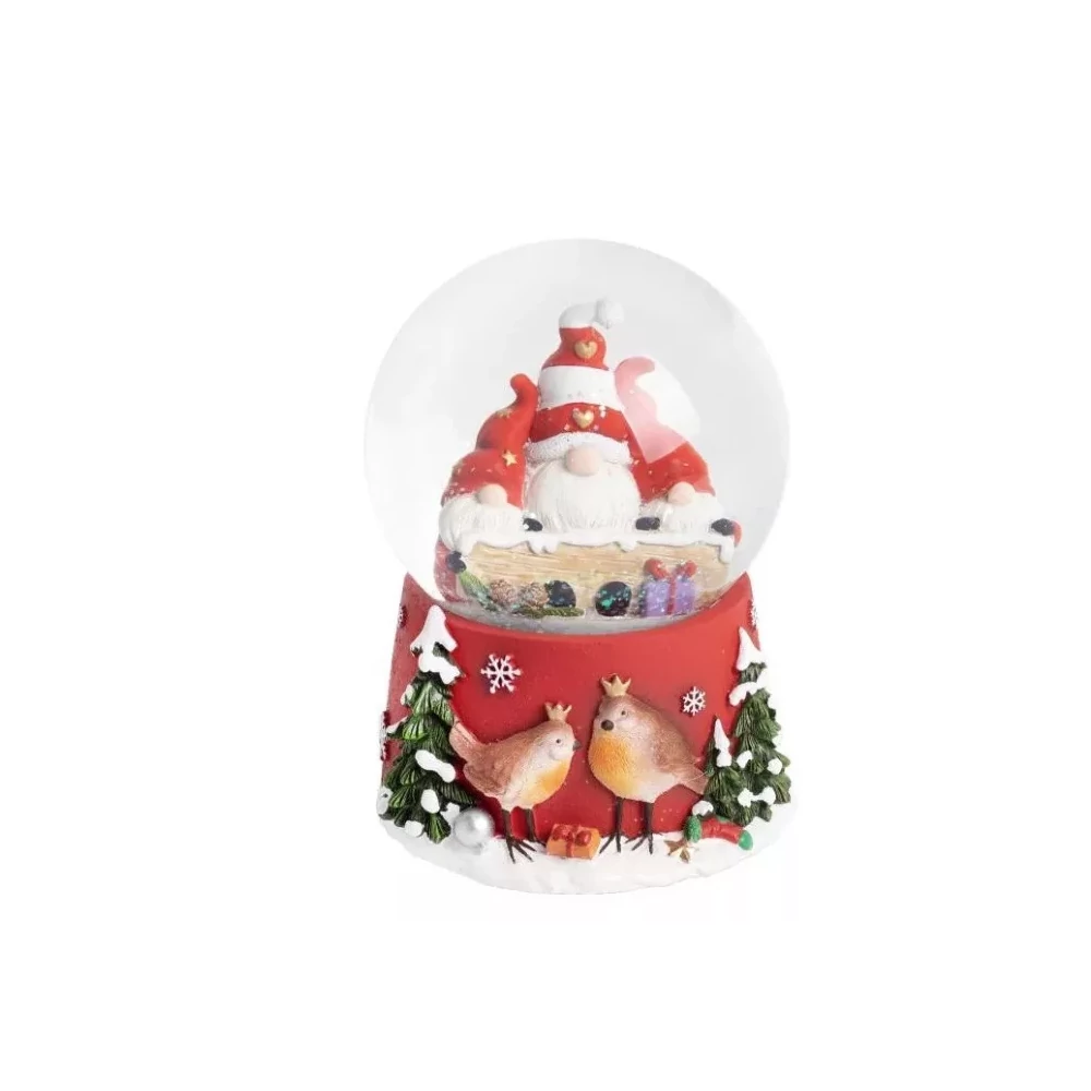 Zenélő hógömb bájos orrtörpökkel, adventi időszakra dekoráció.
