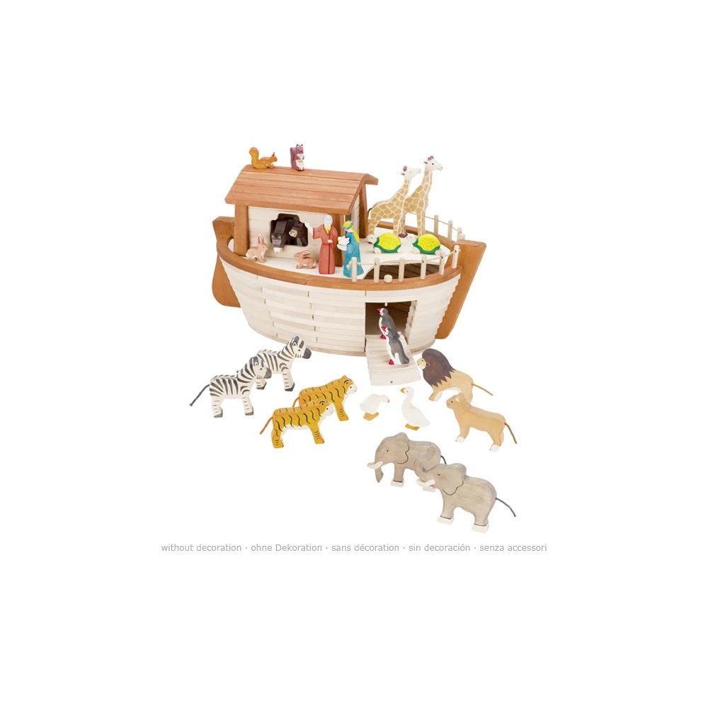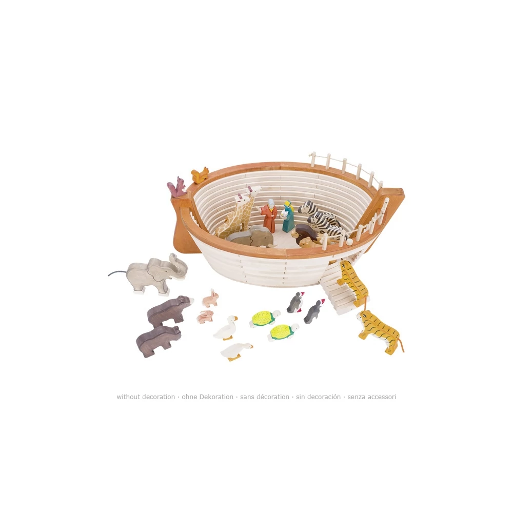 Mindenki ismeri a bibliai vízözön történetét? Ezzel a nagy méretű, igényesen elkészített bárkával előadható Noé és az állatok meséje. A bárkába beletehetők a HOLZTIGER fa figurák, elférnek mindannyian. Noé feladata az volt, hogy megépítse a bárkát, majd felvigye rá az állatokat. A kis óvodások feladata pedig, hogy ezzel a fajátékkal bemutassák a történetet, s közben fantáziájuk segítségével kiegészítsék azt.