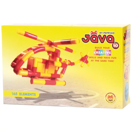 Jáva 10 a klasszikus építőjáték, fejleszti a kézügyességet, kreativitást és a térlátást. Ez a készlet 165 darab elemet tartalmaz, a dobozban minden tartozék és elem megtalálható, ami képen látható tárgyak megépítéséhez szükséges: helikopter.