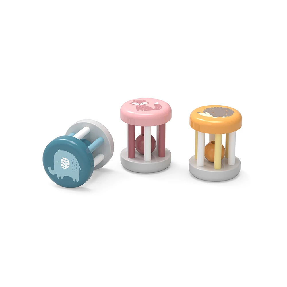 Halványszürke színű csörgő , az egyik első eszköz a babának gyakorló játékokhoz. A henger alakú csörgőben egy színes golyót rejtenek a rácsok. A csörgő nagyon könnyű és egyszerű a fogása.