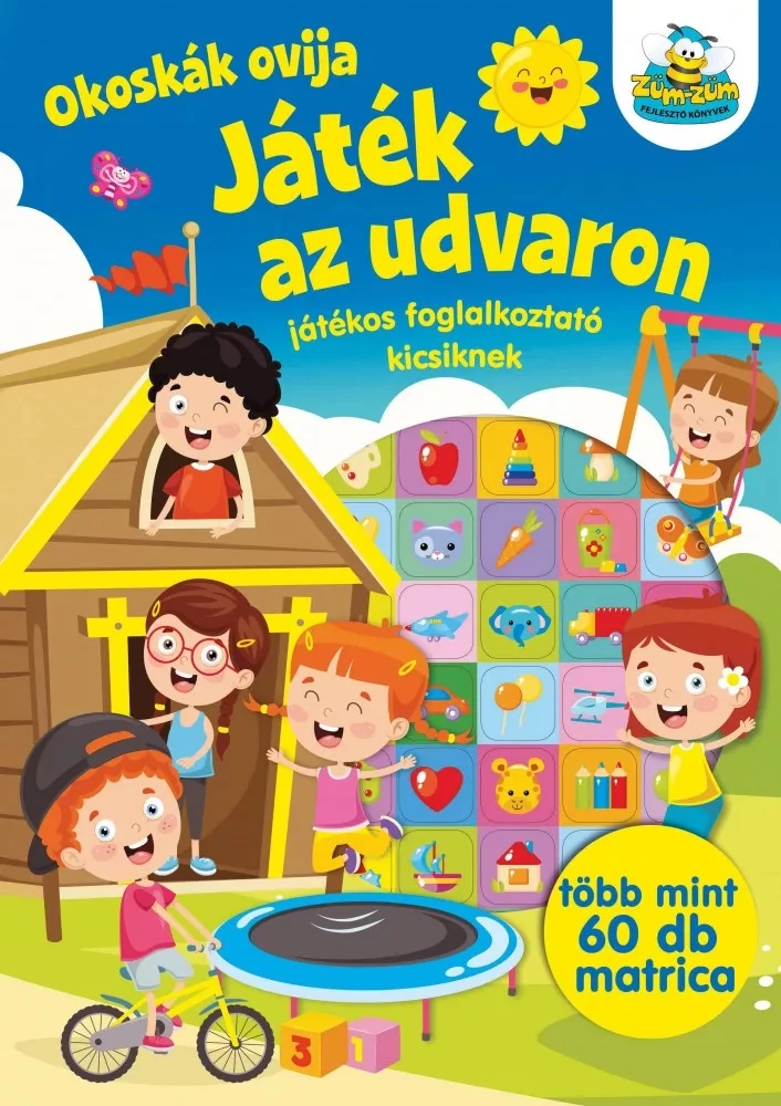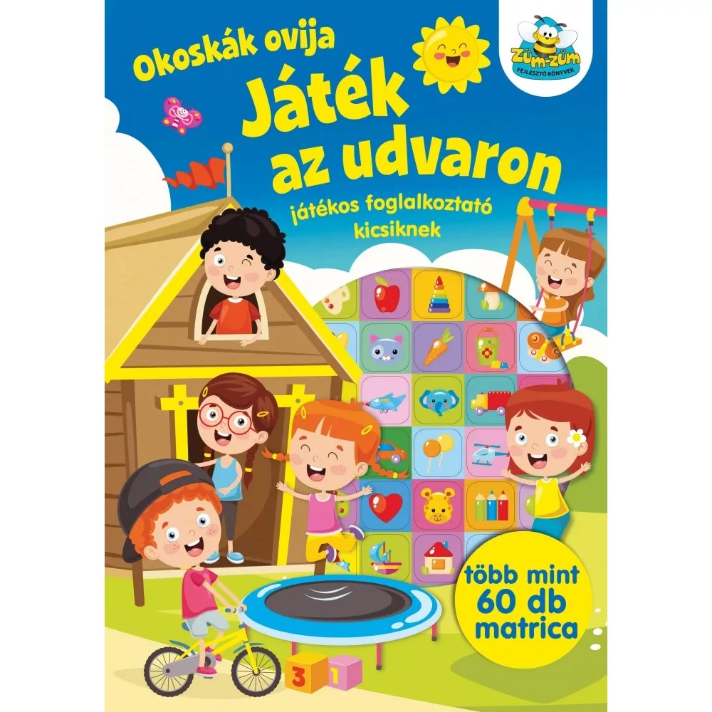 Az ovi udvara tele van érdekes helyekkel és játékokkal, nem csoda, hogy a gyerekek imádnak kint lenni a szabadban. Ebben a vidám, színes foglalkoztatóban játékos feladatok és kedves matricák várnak rád. Játssz te is a többiekkel az oviudvaron!