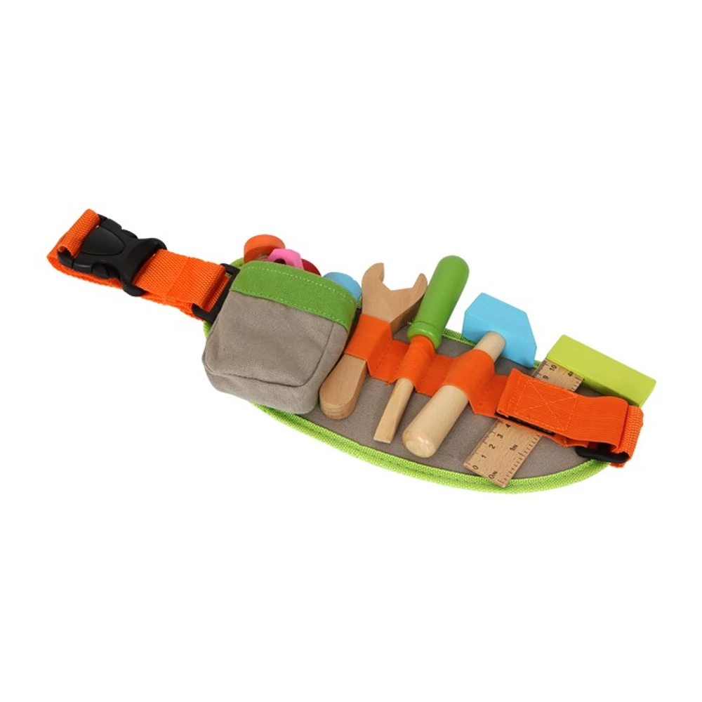 Lakásfelújítás! A kis ezermesterek ezzel a színes szerszám övvel készülhetnek elő a legjobban. Minden eszköz kéznél van, amire csak szükség lehet, beleértve a vonalzó, csavarhúzó, kalapács, állkapocs kulcs, 3 csavar és 5 anya. Mind nagy tömörségű fából készültek. A csattok kattintásra záródnak, erősen tartanak, könnyen szétnyithatóak. Az öv anyaga szövet. A szorgos ezermestereknek elengedhetetlen egy ilyen szerszám öv. A játék segít a kreativitás és a kézügyesség fejlesztésében. A fa szerszám övet 3 éves kortól ajánljuk.