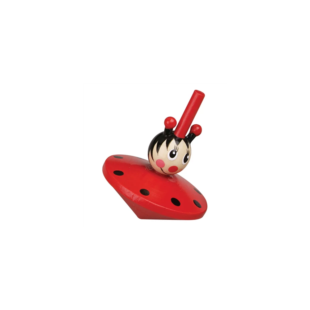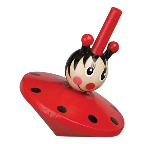 Piros és katica mintás fa pörgettyű a legegyszerűbb ügyességi játékok közé tartozik.