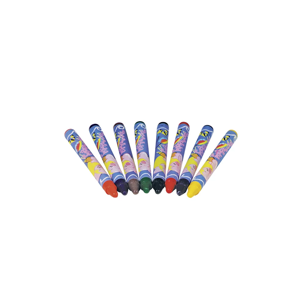 8 darab élénk színű kréta textil festéshez. A vászon festése után egy fehér papírlapot helyezünk az elkészült felületre és ezen keresztül közepes hőfokú vasalóval 30-60 másodpercig vasalgatjuk.