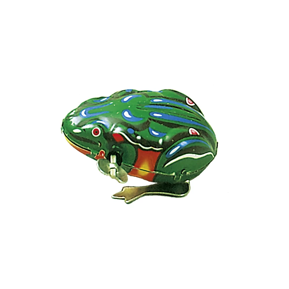 Klasszikus játék! Egy felhúzó karral rendelkezik, amely segítségével feltekerhető a motor és ugrálni kezd a zöld béka. Az időtlen dizájn miatt ez a kis fém béka tökéletesen illik bármely játszószobába.
