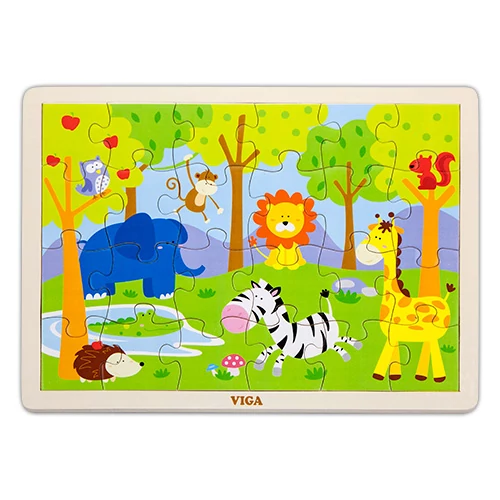 Vadállatos kirakó, részletgazdag, színpompás festéssel, fakeretben. 24 darabos puzzle.