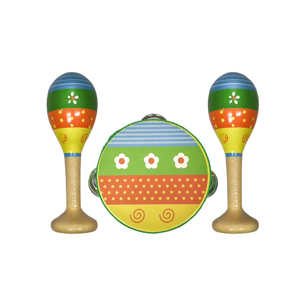 Színes hangszerkészlet festett virágos motívummal.